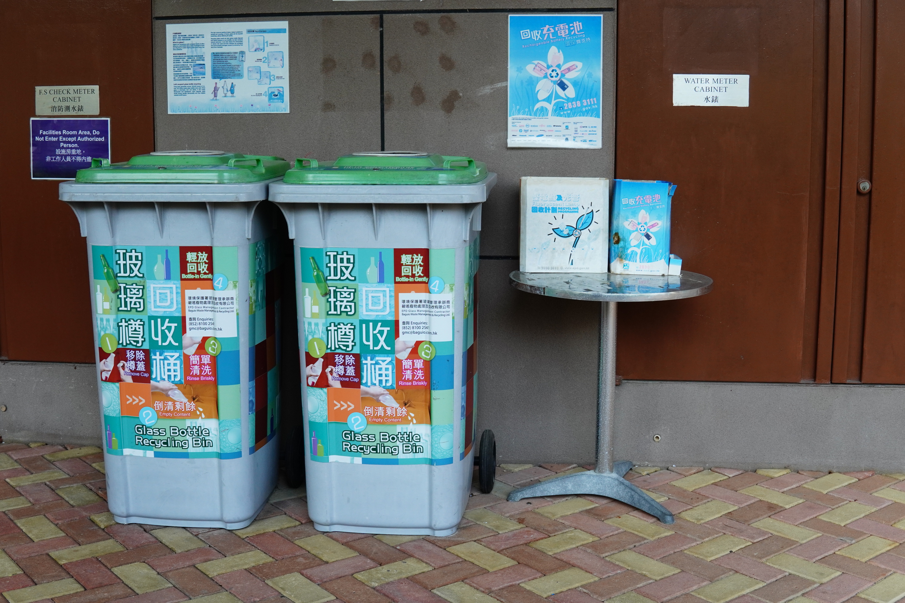 • We have developed pioneering waste reduction and recycling practices in our operations. Waste collection and separation facilities are in place to collect plastic bottles, used tyres, common recyclables, used clothes, second-hand books, toys and glass bottles to encourage tenants, customers and residents to recycle and reduce waste. Re-usable items collected are donated to various NGOs to help the underprivileged.  Glass bottles are ground into small sand granules through glass grinder at Discovery Bay and are then used for road repair work.